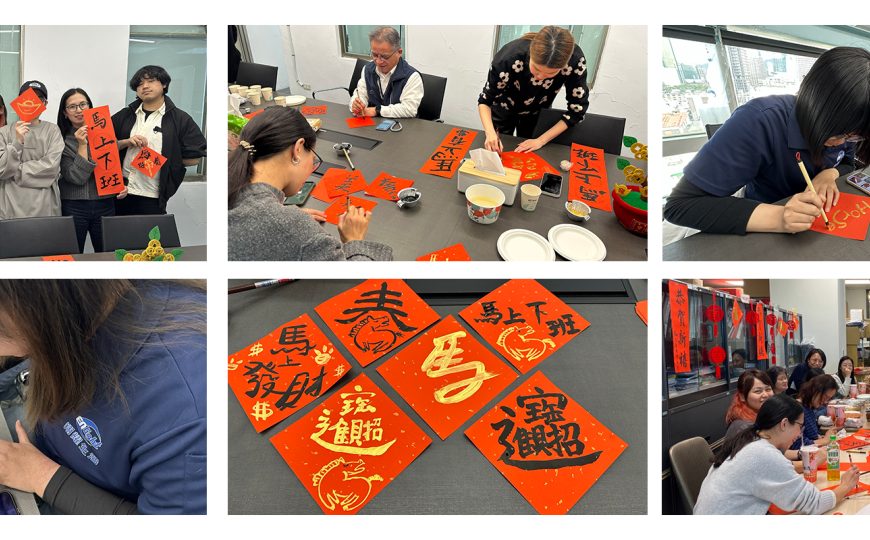 翔耀實業於2026年2月2日(台北總公司)及2月10日(青埔分公司)舉辦「年節春聯書寫活動」,邀請全體同仁一同參與,透過傳統書寫,在年節前夕為忙碌的工作日常,留下一段溫柔而專注的時刻。